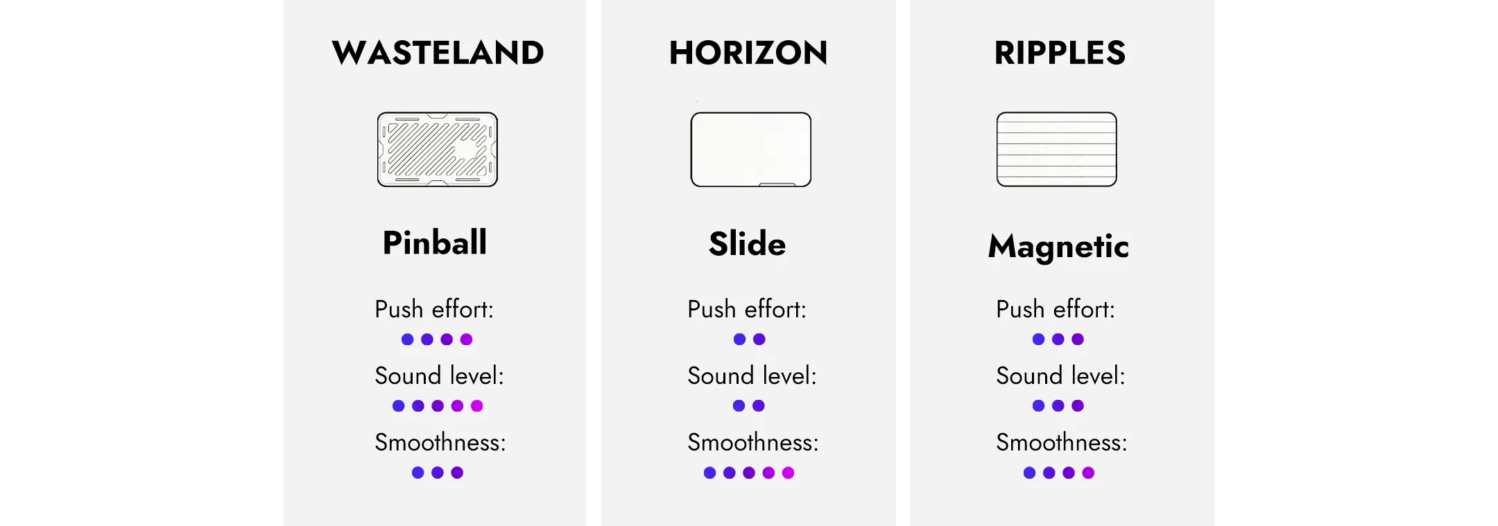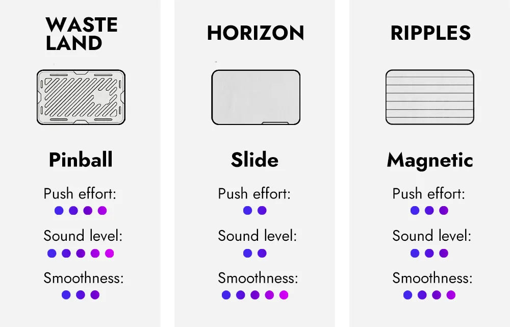 - Drive Mechanism: Pinball / Slide / Magnetic