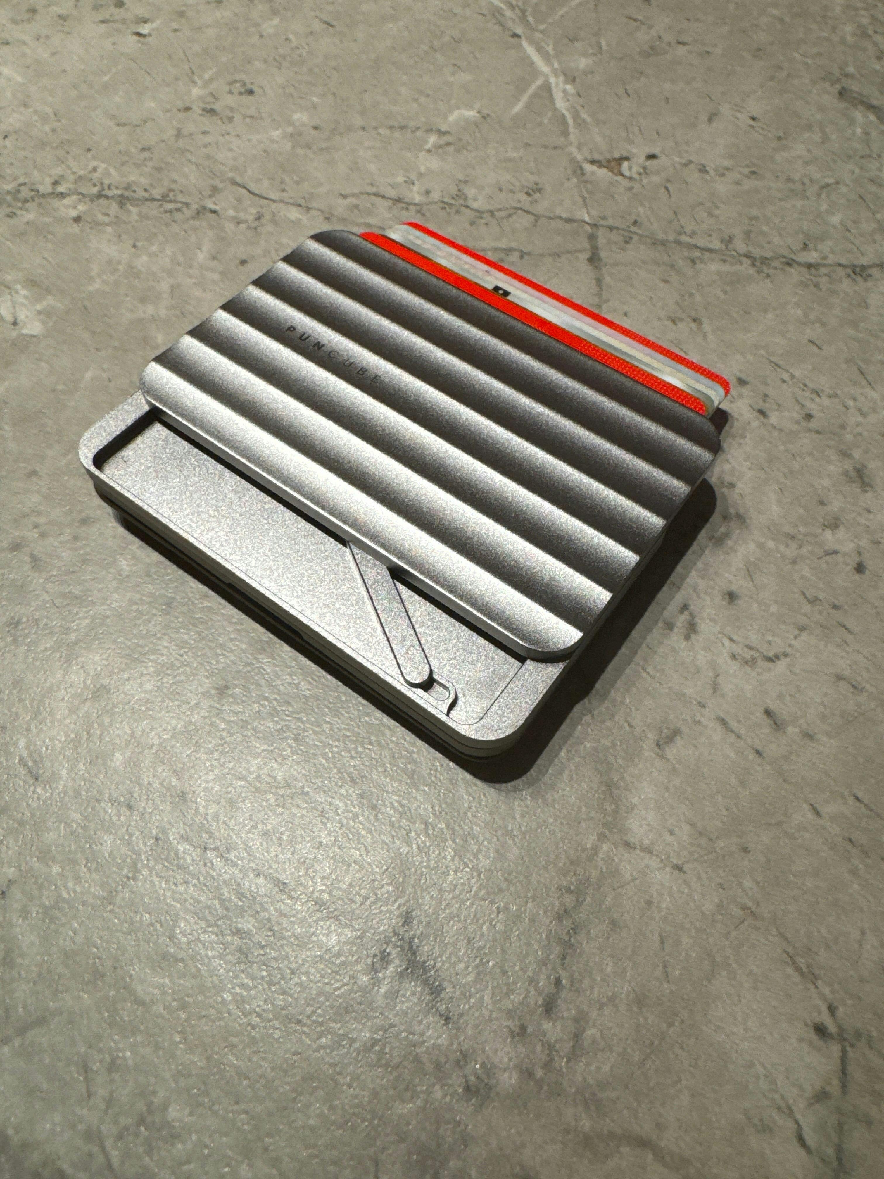 The Mech Wallet is a slim metal wallet that combines style and performance. Its fidget-inspired mechanical system allows smooth one-handed access to 6 cards, making it both practical and uniquely satisfying.