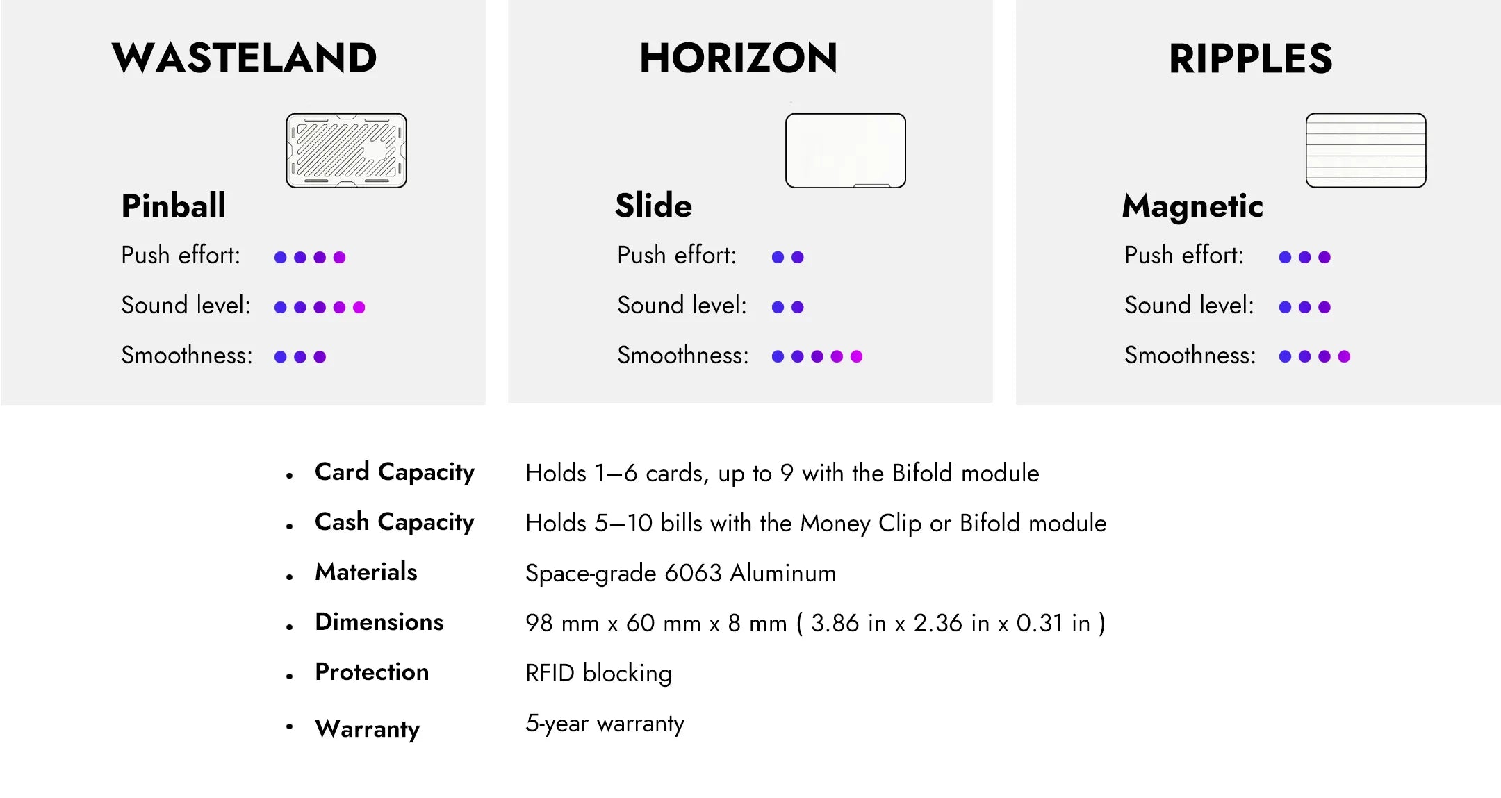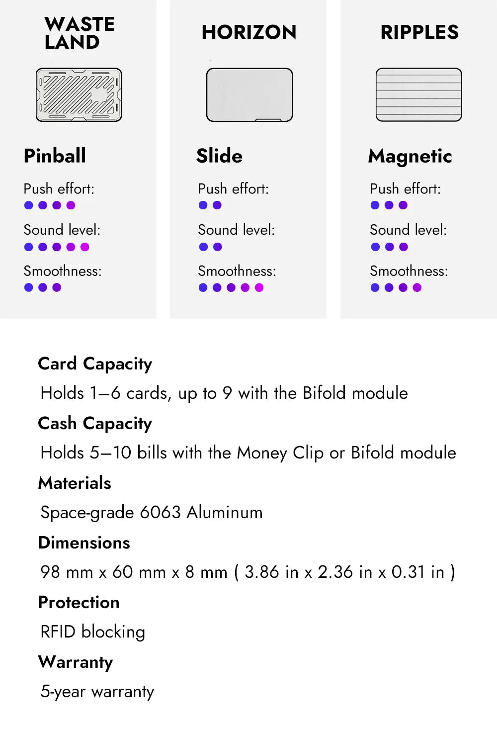 Our mech wallet can last a lifetime with proper care. That’s why we offer a 5-year extended warranty (while other products receive 2 years) plus lifetime parts replacement—so you can enjoy it worry-free.